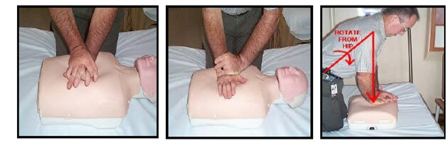 Posisi tangan dan tubuh pada kompresi dada/pijat jantung