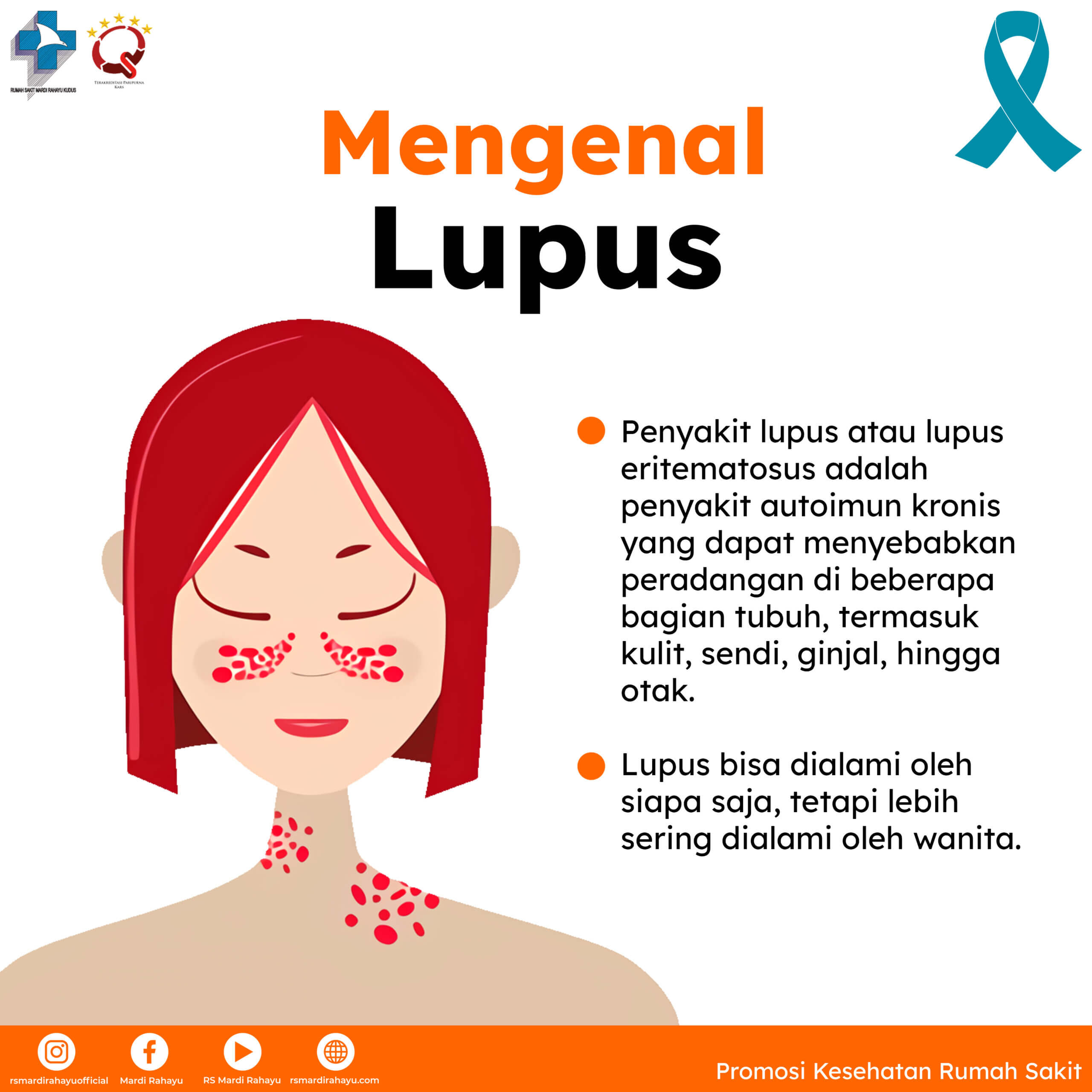 Penyakit lupus atau lupus eritematosus adalah penyakit autoimun kronis yang dapat menyebabkan peradangan di beberapa bagian tubuh, termasuk kulit, sendi, ginjal, hingga otak. Lupus bisa dialami oleh siapa saja, tetapi lebih sering dialami oleh wanita.