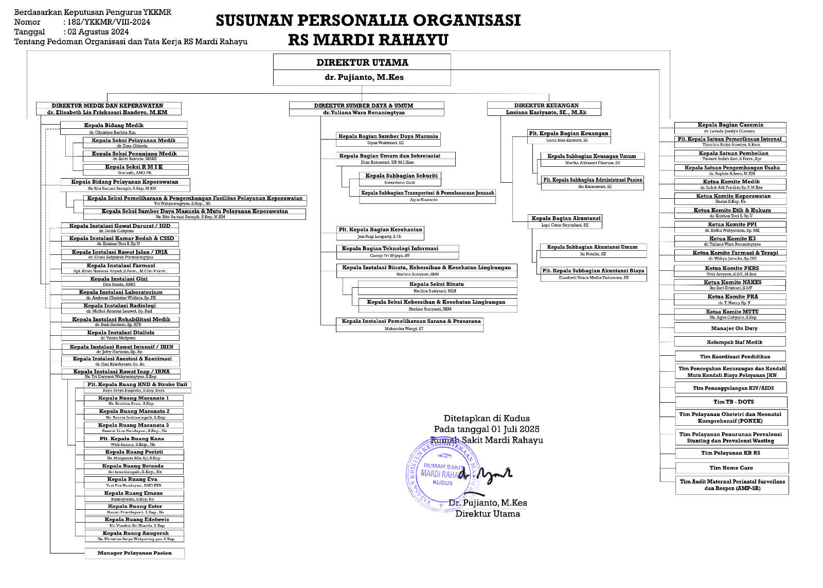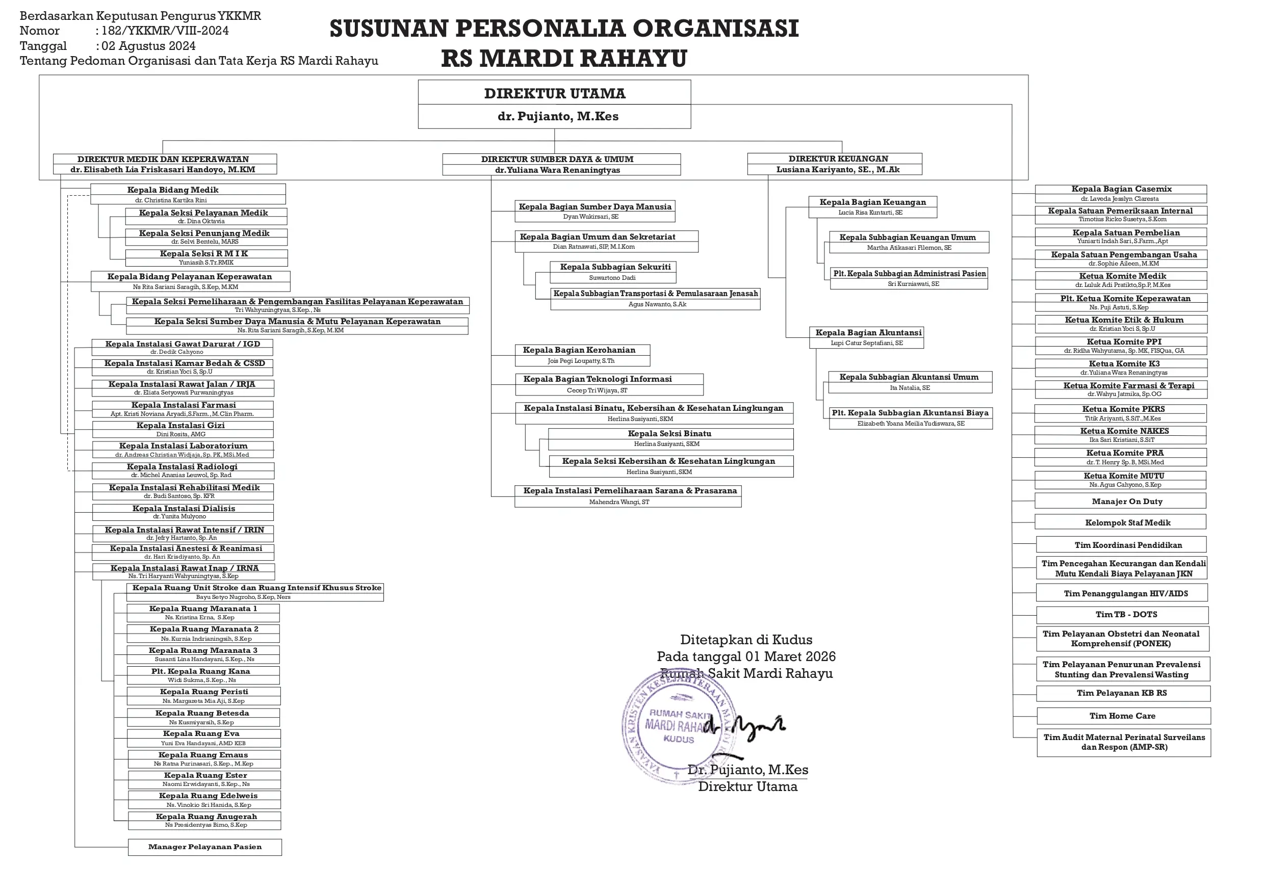 Berikut merupakan susunan struktur organisasi di RS Mardi Rahayu