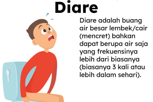 Apa Itu Diare? Diare adalah buang air besar lembek/cair ( mencret) bahkan dapat berupa air saja yang frekuensinya lebih dari biasanya ( biasanya 3 kali atau lebih dari sehari). Bahaya Diare Kekurangan cairan/lemas mengakibatkan kehabisan cairan dan meninggal. Tanda dan Gejala Diare? BAB cair Muntah Kadang demam Malas makan/minum Malas bergerak atau lemas Kencing sedikit Dehidrasi (kekurangan cairan) Penyebab Diare Infeksi virus atau bakteri Makanan/nutrisi tidak higienis Gangguan kesehatan, misalkan campak Faktor lingkungan dan perilaku, lingkungan kotor , tidak cuci…